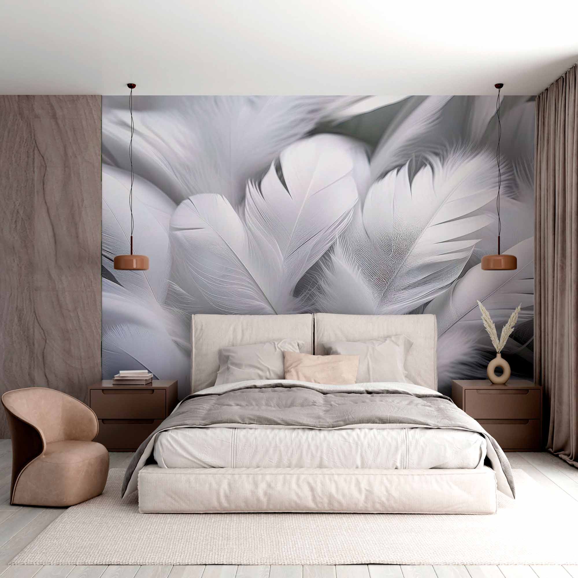 Białe Pióra 3D Tapeta Muralowa