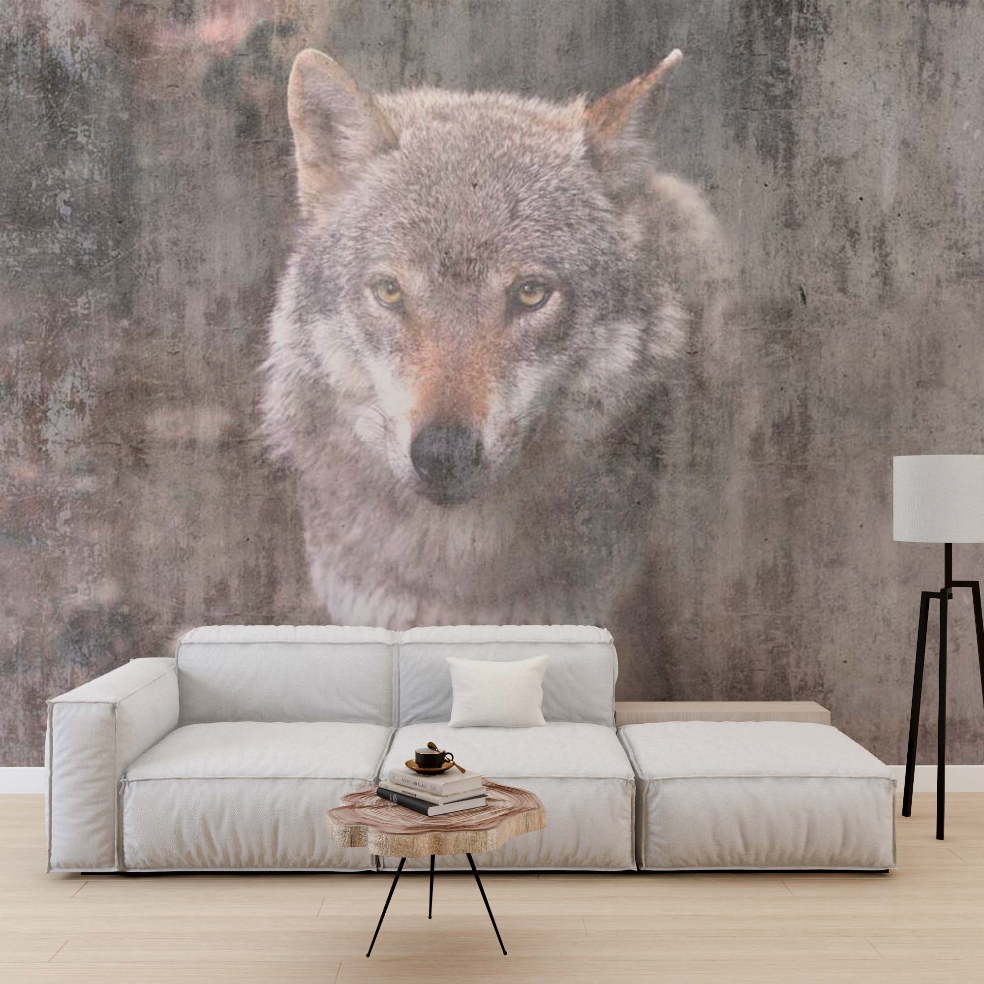 Wilk Naklejka Zwierzęta leśne Stara tapeta z teksturą betonu cementowego