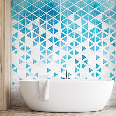Abstract Watercolor Triangle Grid Wall Mural Wallpaper - Blue and White Crumpled Paper Design