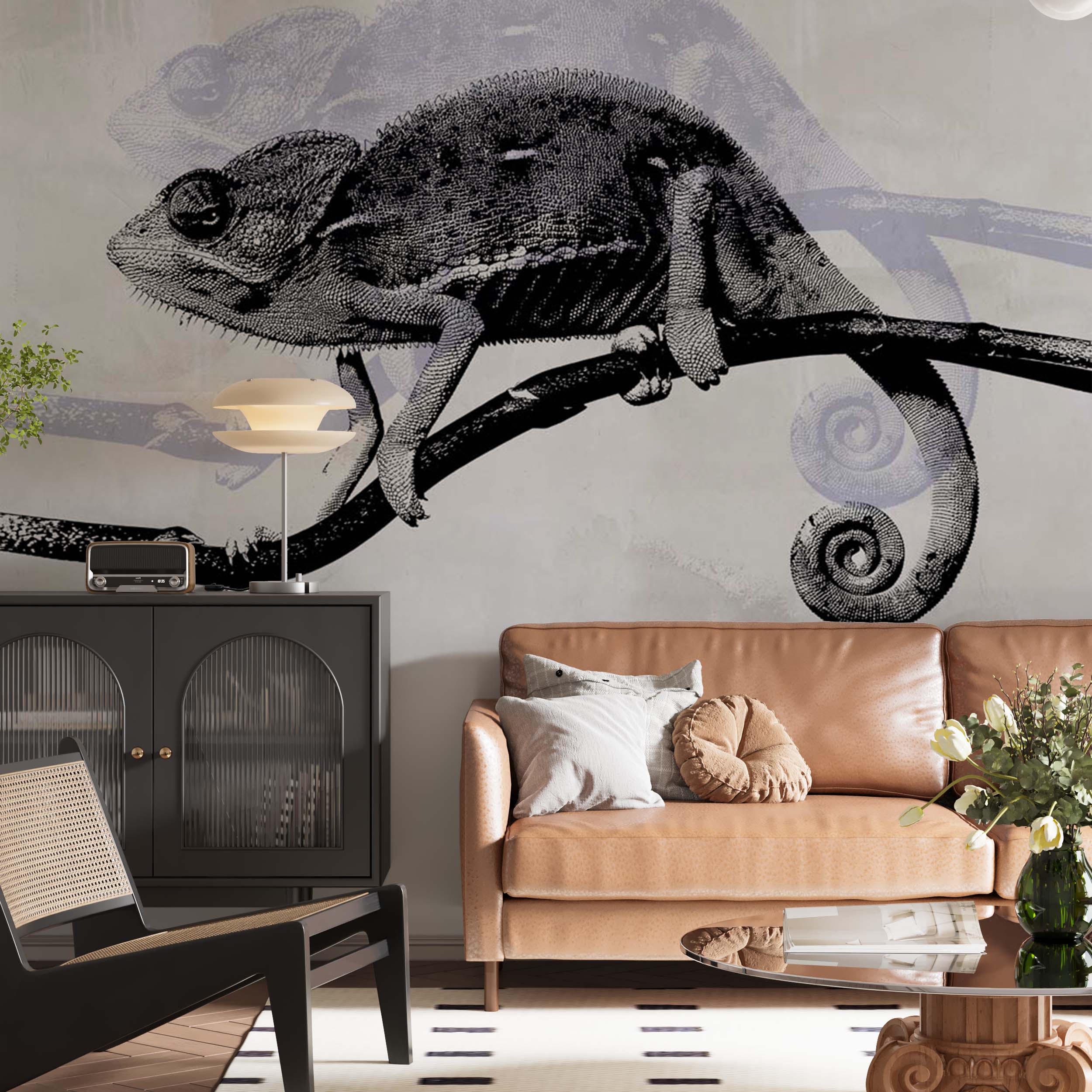 Black and White Chameleon Wall Mural Modern Animals Wallpaper