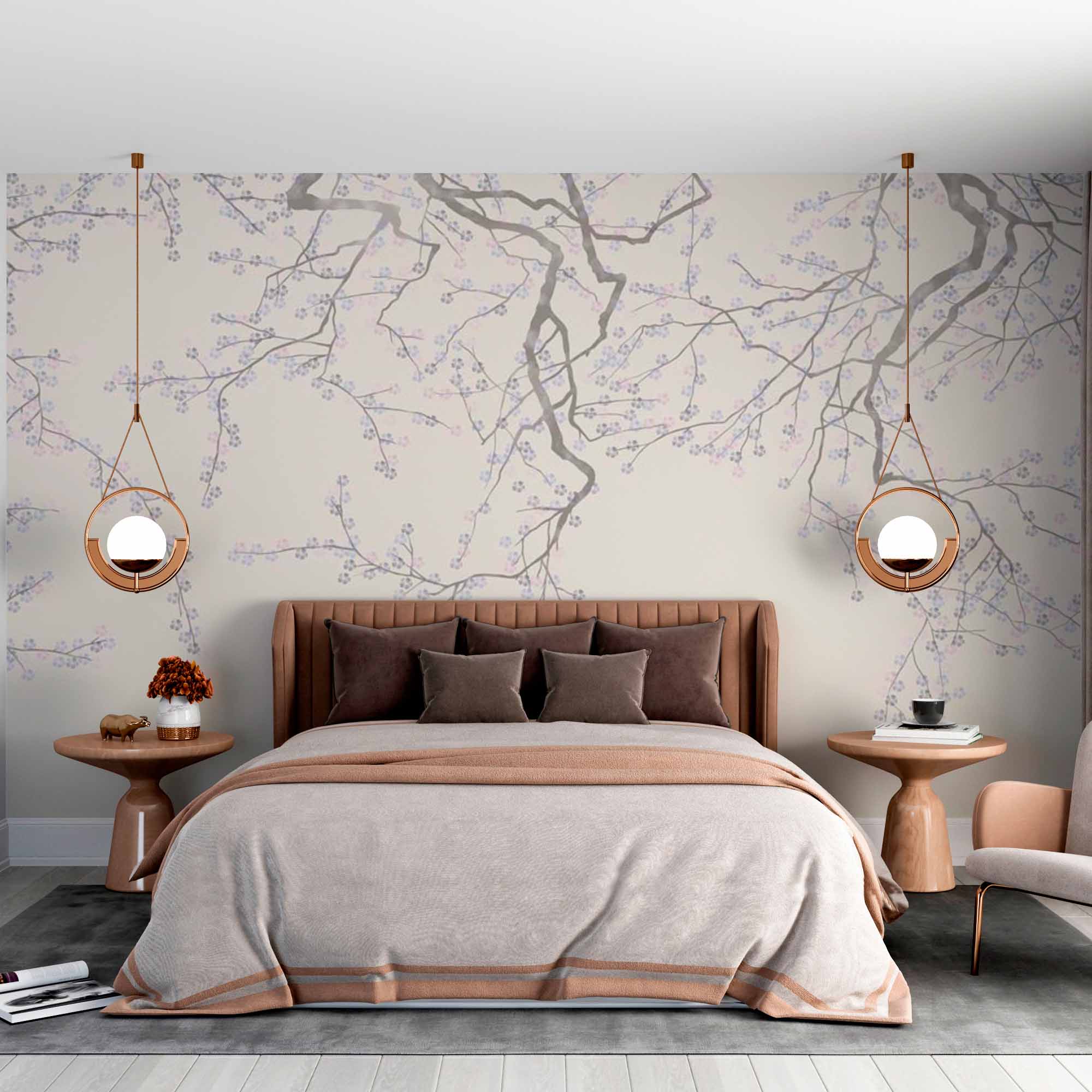 Branch with Blooming Pink Flowers Wall Mural Springtime Pink Blossom Wallpaper