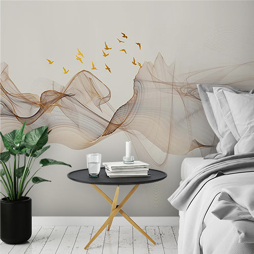 Elegant Flowing Lines and Birds Wall Mural Wallpaper - Modern Abstract Design