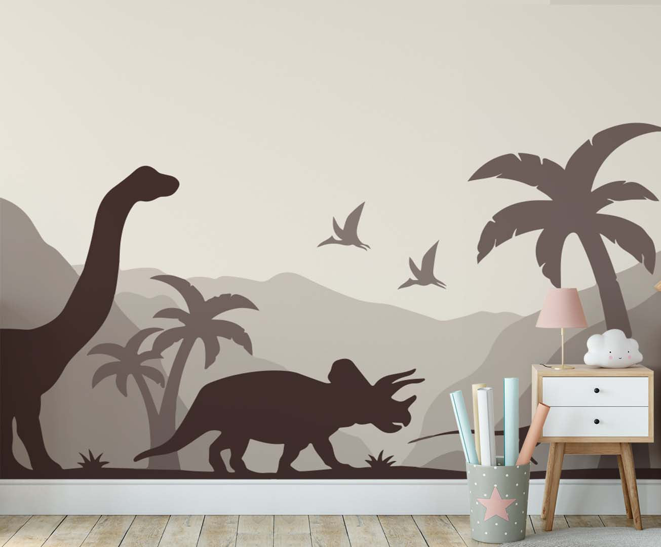 Kids Wall Mural Dark Dinosaur Silhouette Jurassic World Nursery Wallpaper