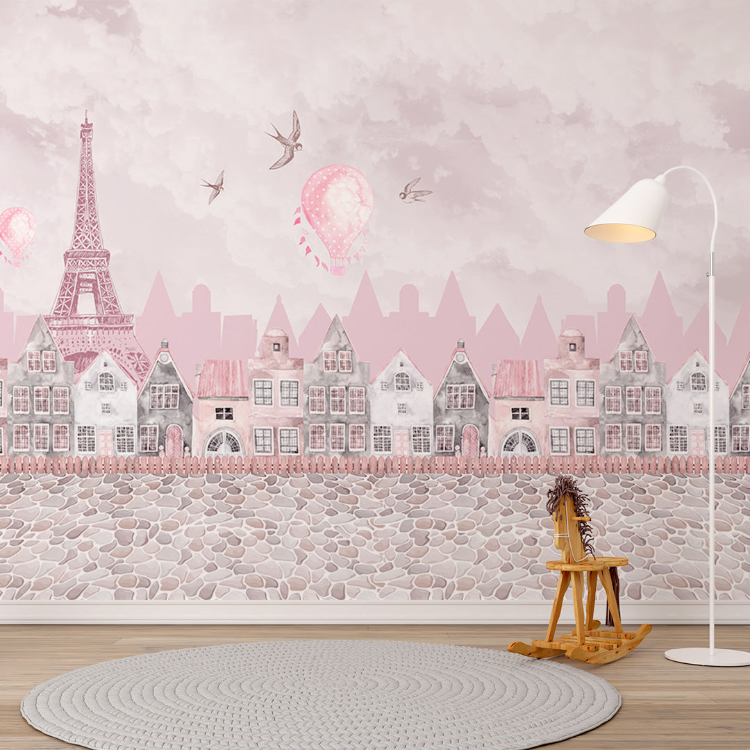 Kids Wall Mural Pink Paris Kids City Eiffel Tower Wallpaper for Girls