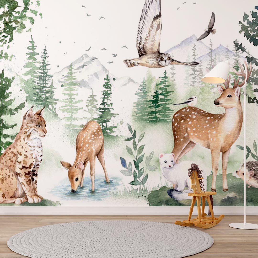 Kids Wall Mural Watercolor Forest Animals Wallpaper for Kids Room