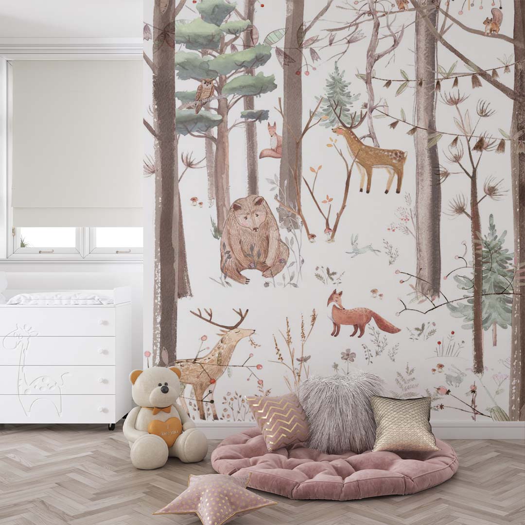 Kids Wall Mural Whimsical Forest Animals Nature Inspired Wallpaper for Kids Room