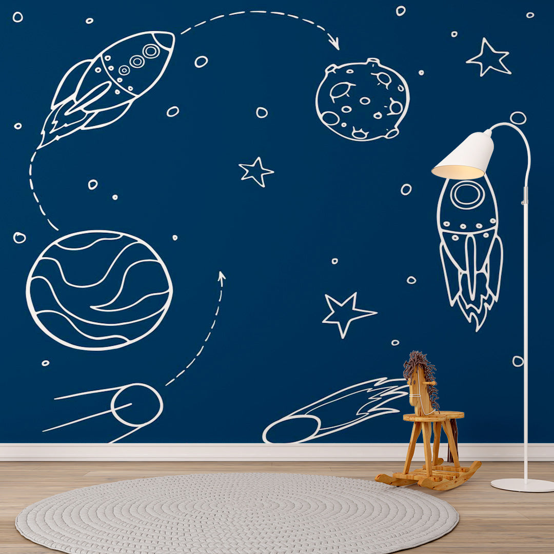 Kids Wall Murals Blue Space Stars Simple Design Nursery Wallpaper for Kids