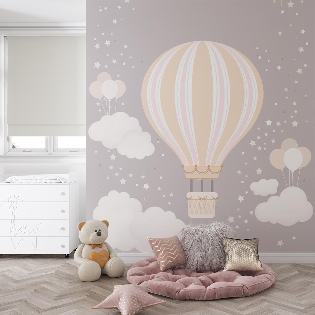 Kids Wall Murals Hot Air Balloons Stars and Clouds Scandinavian Wallpaper
