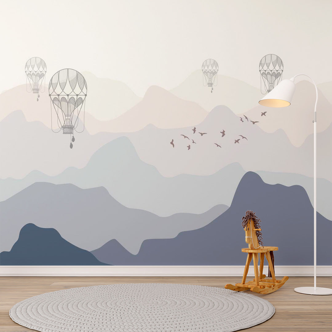Kids Wall Murals Misty Mountains Balloon Nursery Wallpaper for Kids