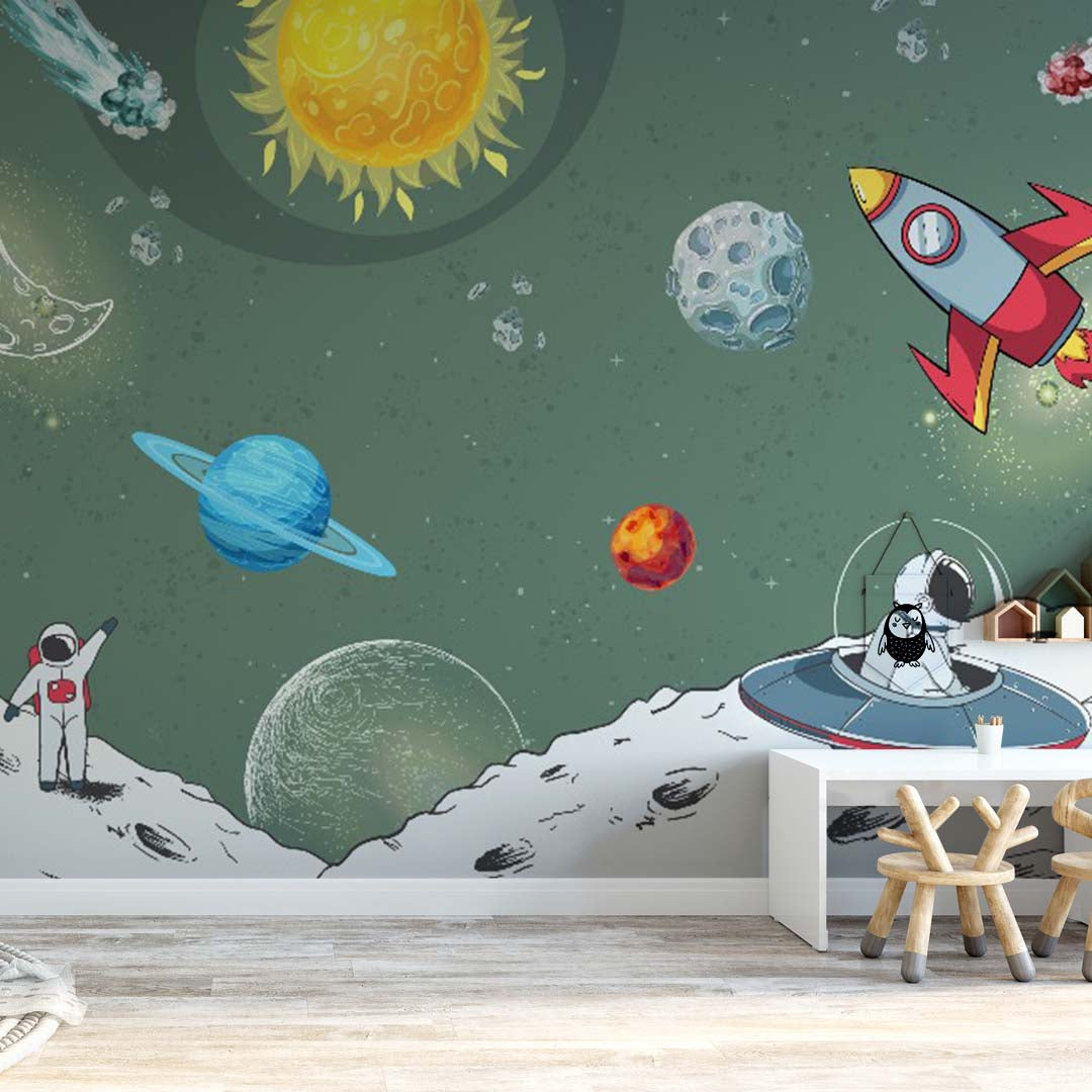 Kids Wall Murals Solar System Space Rocket Planets Astronaut Wallpaper for Kids