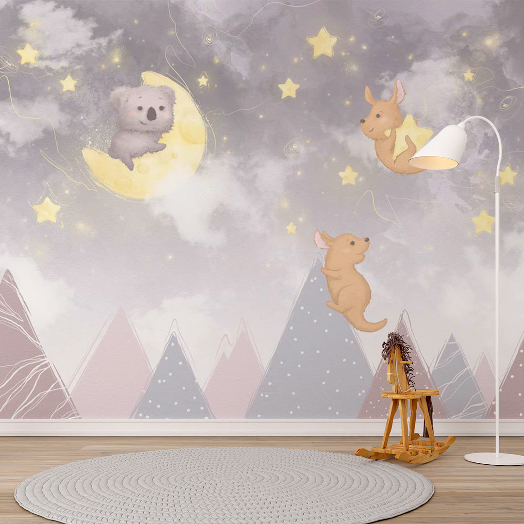 Kids Wall Murals Star Night Cute Animals Scandinavian Mountains Wallpaper for Kids