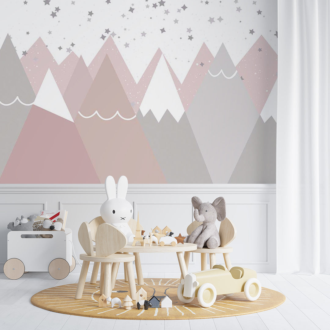 Kids Wall Murals Stars Sky Light Pink Mountains Wallpaper for Kids