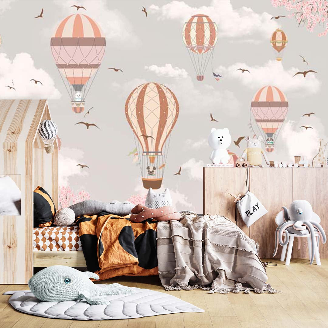 Kids Wall Murals Whimsical Air Balloon Playful Designs Animals Sakura Blossom