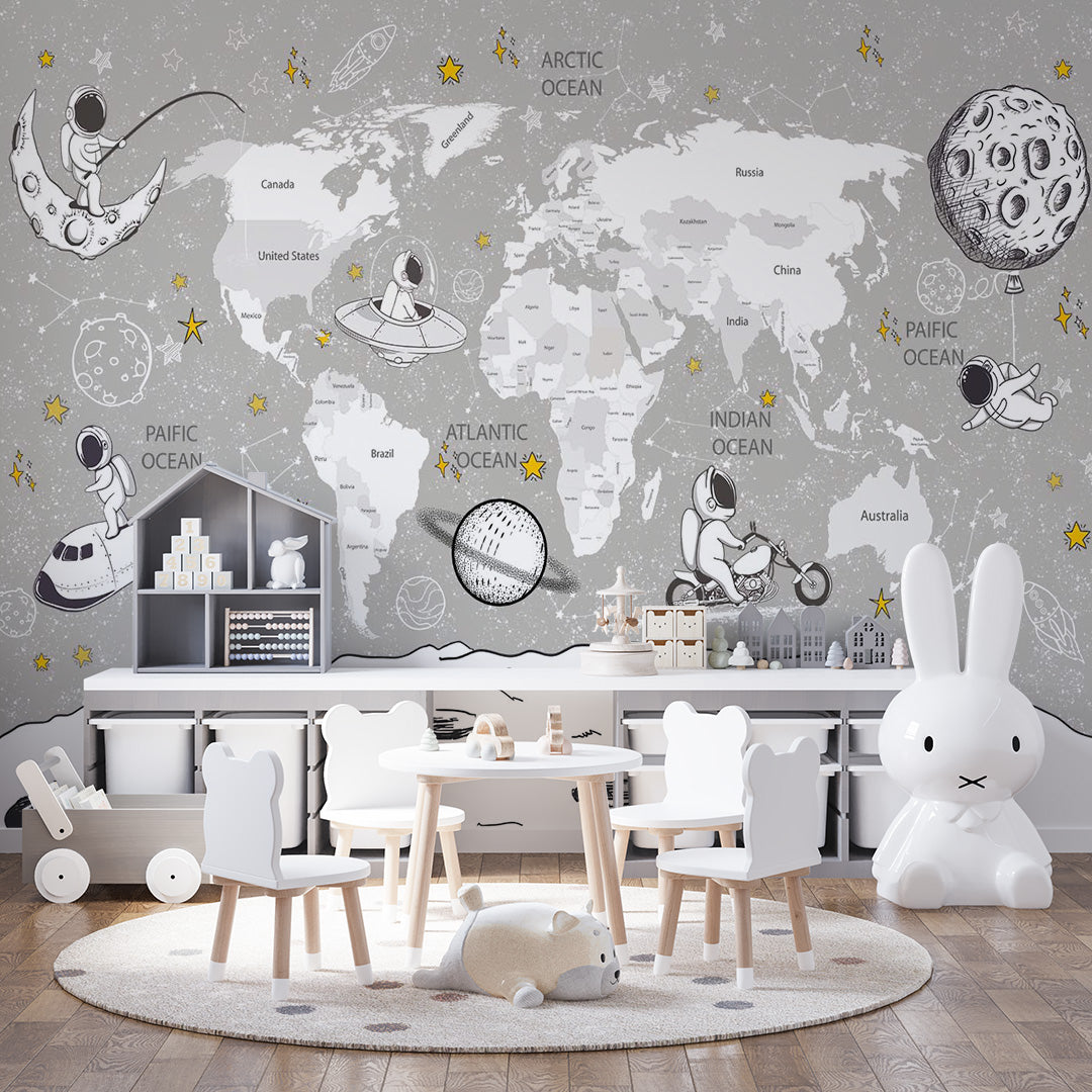 Kids World Map Wall Mural Decals Posters for Girls Boys Baby Wallpaper for Kids