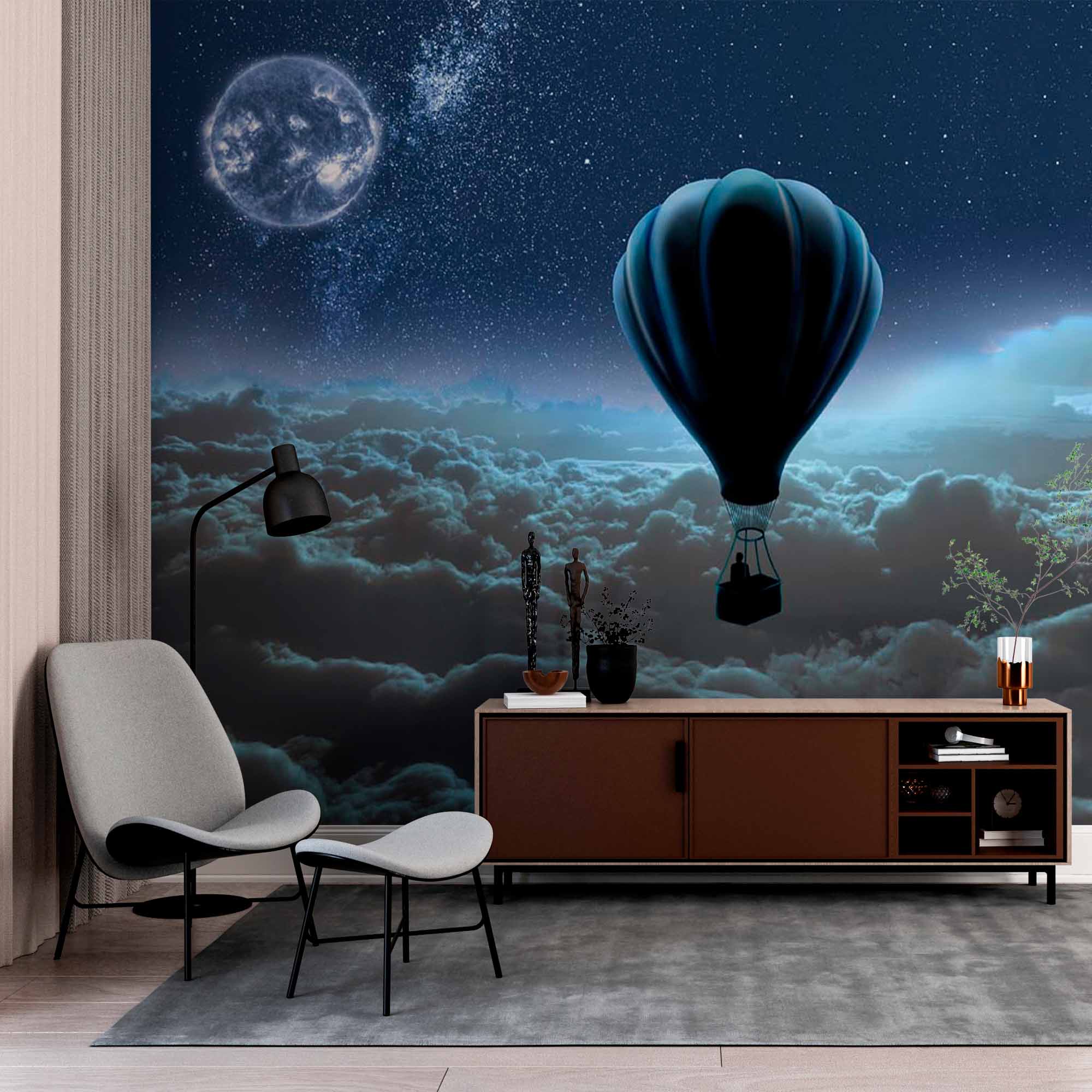 Magical Night Sky Hot Air Balloon Wall Mural Wallpaper - Floating Above the Clouds