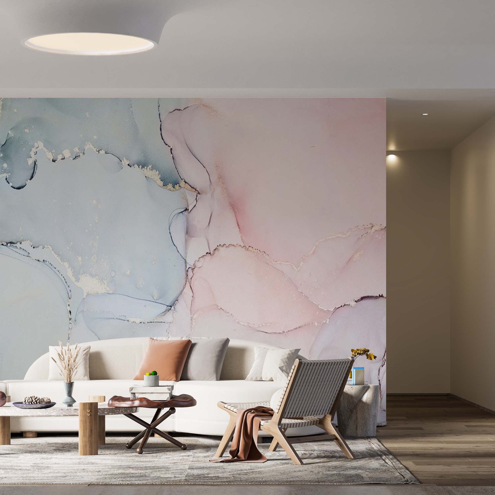 Marble Wall Mural Light Pink and Blue Fluid Abstract Wallpaper