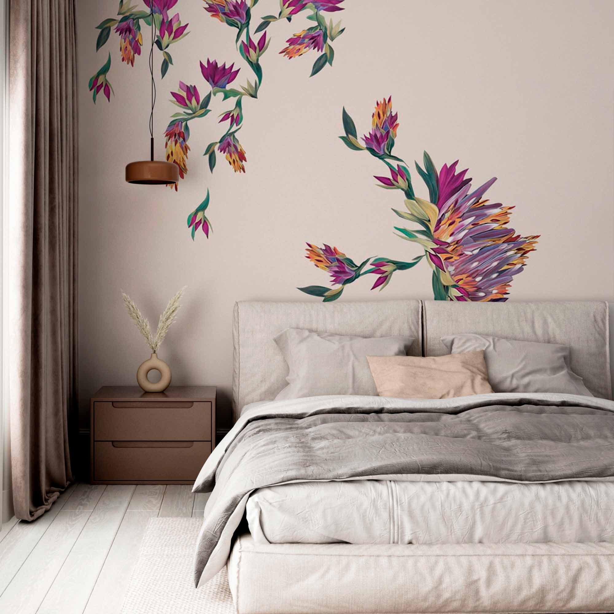Minimalist Botanical Wall Mural Wallpaper with Vibrant Purple Flowers