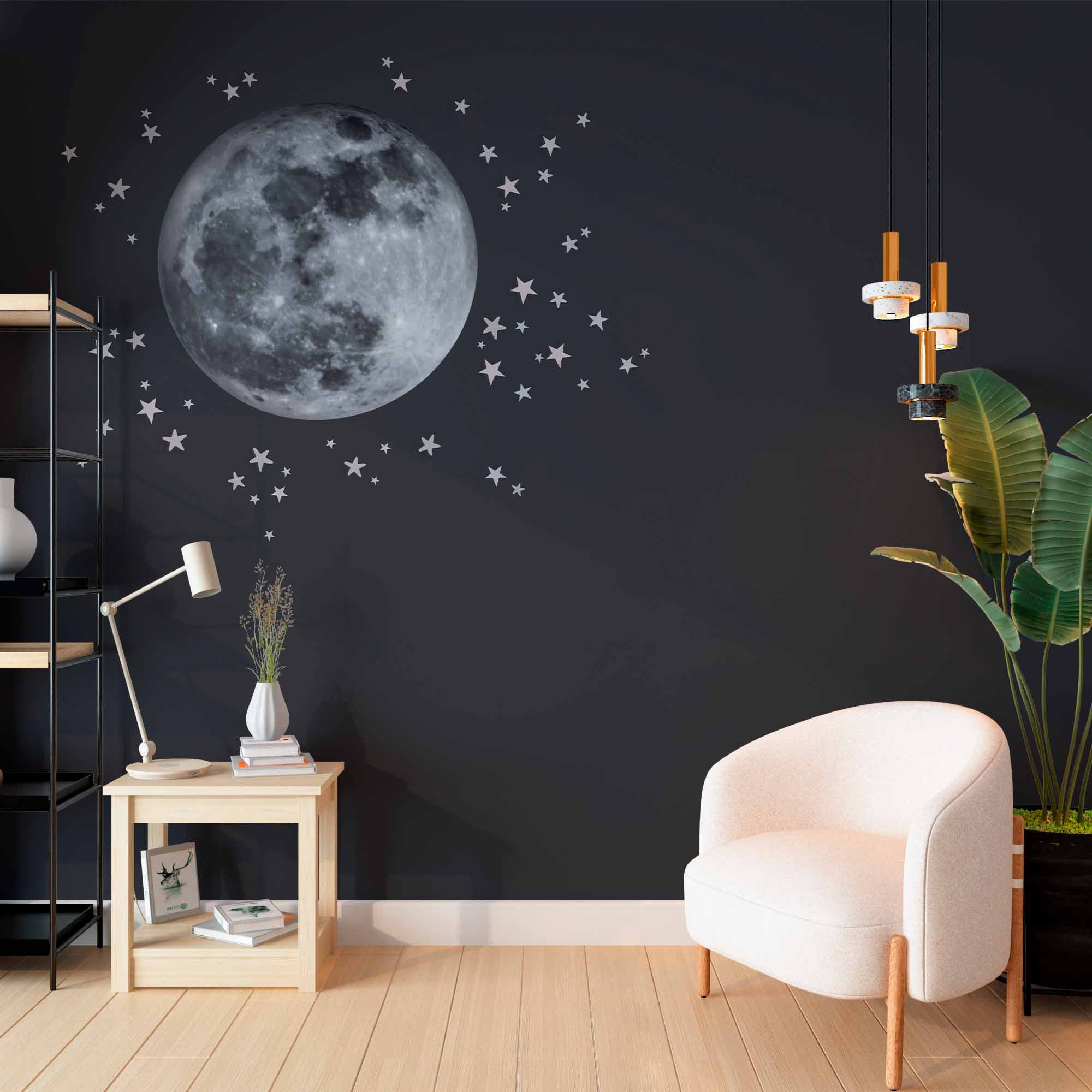 Minimalist Full Moon and Stars Wall Mural Wallpaper - Dark Sky Design