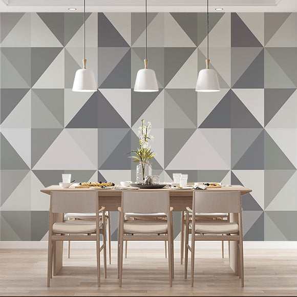 Minimalist Monochrome Geometric Triangle Wall Mural Wallpaper - Modern Grey Scale Design