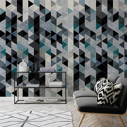 Modern Abstract Geometric Triangle Wall Mural Wallpaper - Textured Blue, Black, and Grey Design