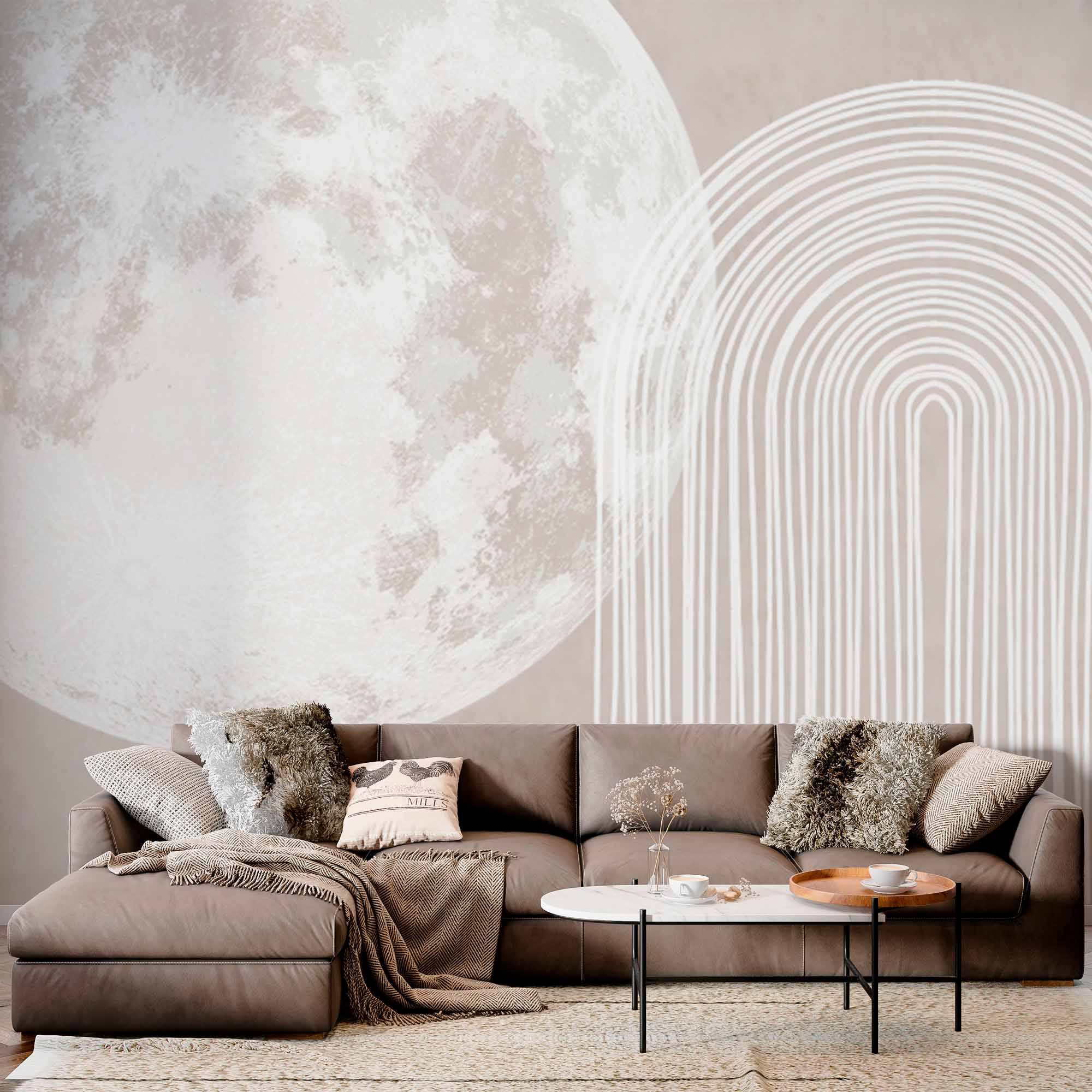 Modern Minimalist Wall Mural Wallpaper with Moon and Geometric Lines