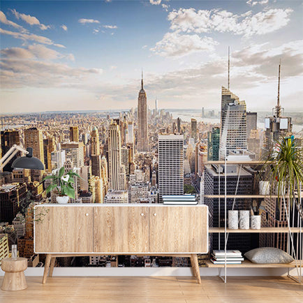 Panoramic Aerial View of New York City Skyline with Empire State Building Wall Murals