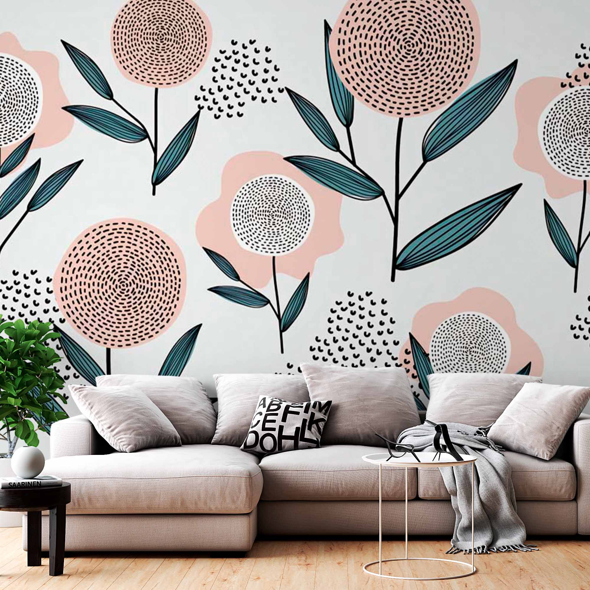 Playful Abstract Floral Wall Mural Wallpaper with Modern Geometric Design