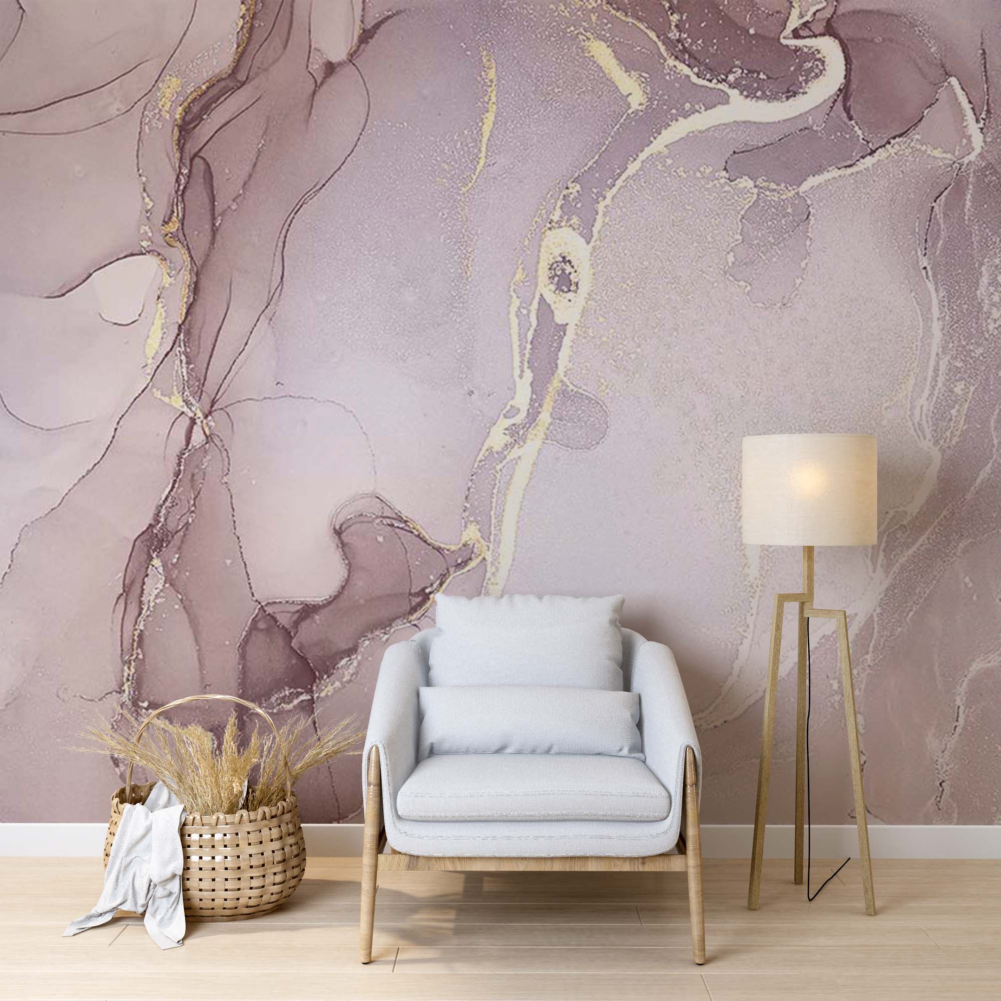 Rose Marble Wall Mural Art Gold Splashes Fluid Alcohol Ink Wallpaper