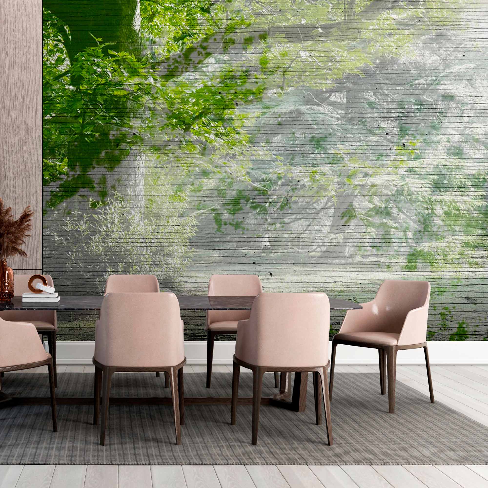 Rustic Forest Blend Wall Mural Wallpaper - Nature Scene with Vintage Wood Texture