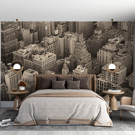 Vintage New York City Aerial View Wall Mural - Sepia Tone Urban Landscape